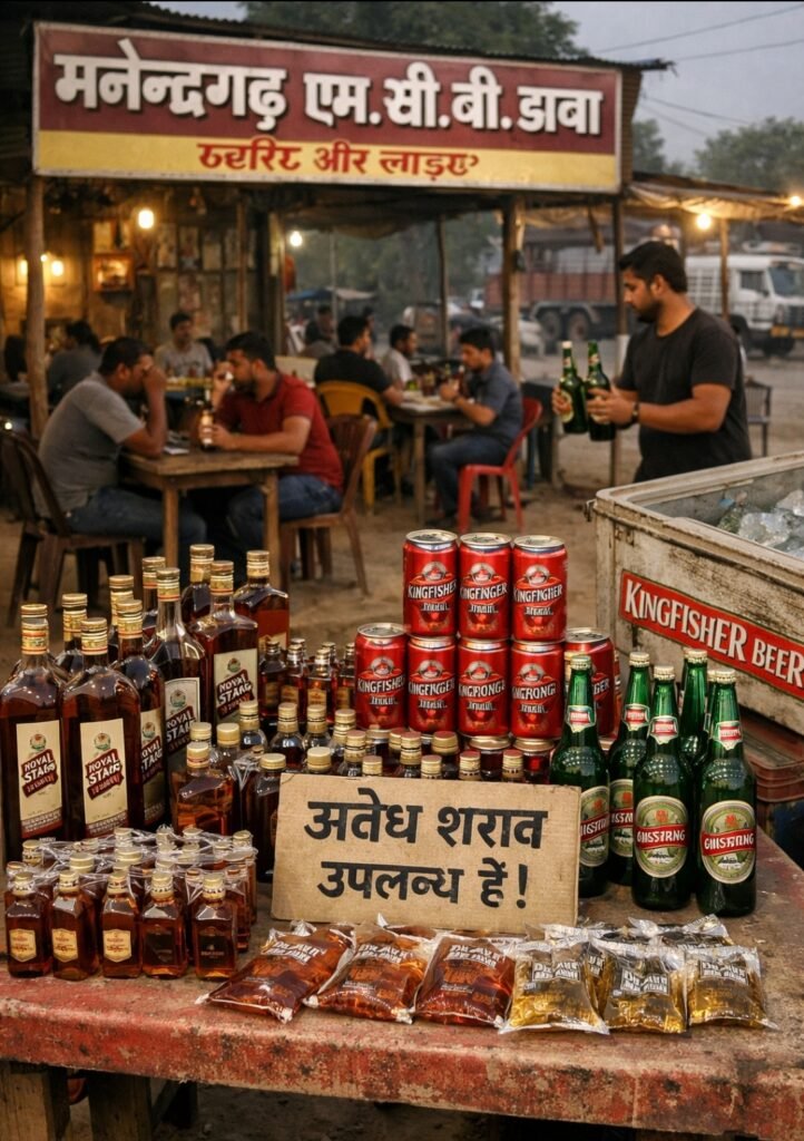 स्थानीय सूत्रों के अनुसार मनेन्द्रगढ़ शहर सहित आसपास के ग्रामीण इलाकों—लेदरी, झागरखाड़, खोगापानी और सीमावर्ती क्षेत्रों—में खुलेआम अवैध शराब की बिक्री जारी है। ढाबों से लेकर किराना दुकानों तक, हर जगह बिना रोक-टोक शराब परोसी जा रही है। हैरानी की बात यह है कि यह सब उस जिले में हो रहा है, जहां आबकारी विभाग की नियमित तैनाती है और शासकीय शराब दुकानें भी संचालित हैं।