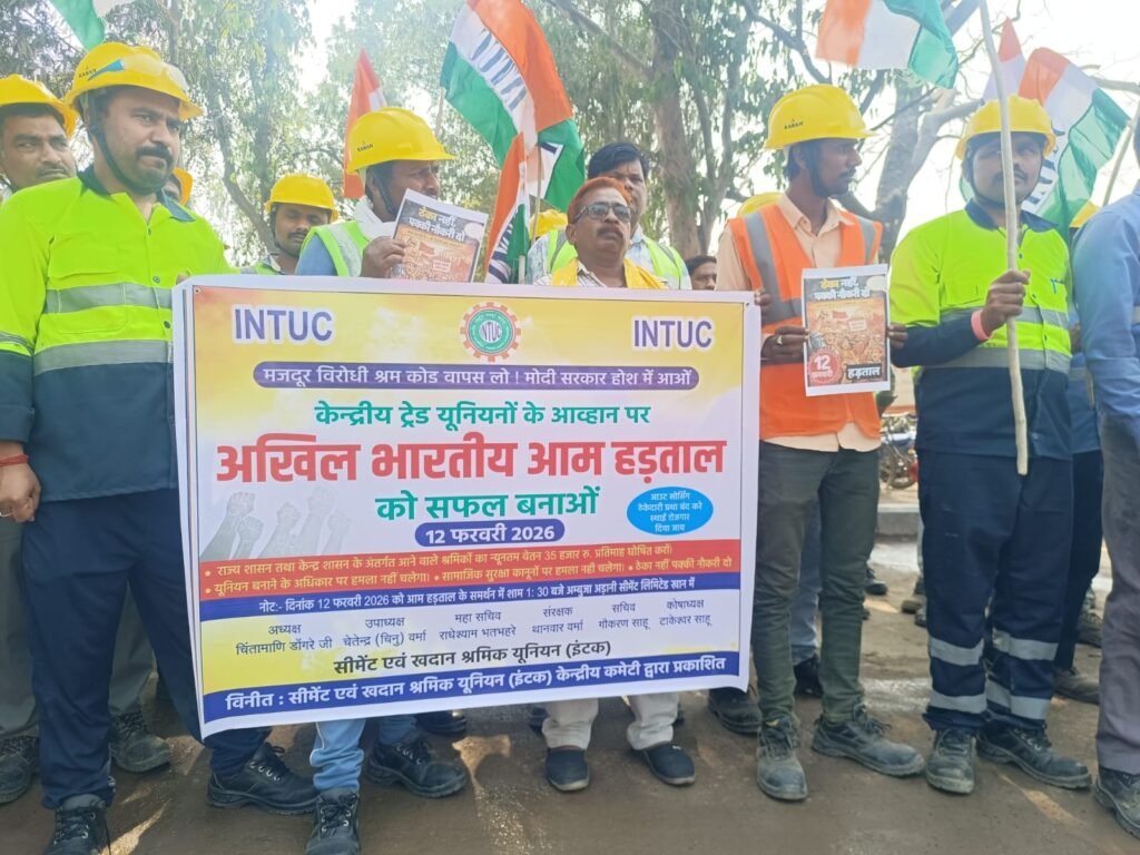 दिनांक 12 फरवरी 2026 के भारत बंद को राष्ट्रीय मजदूर कांग्रेस ट्रेड यूनियन (इंटक) अंबुजा अडानी सीमेंट प्लांट रवान मुख्य गेट मे आम सभा कर भारत बंद को समर्थन किया गया देश भर मे सभी विपक्षी दलों से मजदूर संगठन को समर्थन मिल रहा है बलौदाबाजार मजदूर संगठन को कॉग्रेस पार्टी का मिला समर्थन प्रमुख रूप से उपस्थित पूर्व पाठय् निगम मंडल अध्यक्ष, एवं पूर्व विधायक प्रत्यासी बलौदाबाजार शैलेश नितिन त्रिवेदी, बलौदाबाजार.ब्लाक शहर अध्यक्ष प्रवीण सेन,ग्रामीण अध्यक्ष दीपक साहू, इंटक युनियन उपाअध्यक्ष चेतेन्द्र चीनू वर्मा ,महा सचिव राधेश्याम भतपहरे, कोषाध्यक्ष टाकेश्वर साहू,एवं इंटक युनियन के सभी सदस्य उपस्थित रहे।