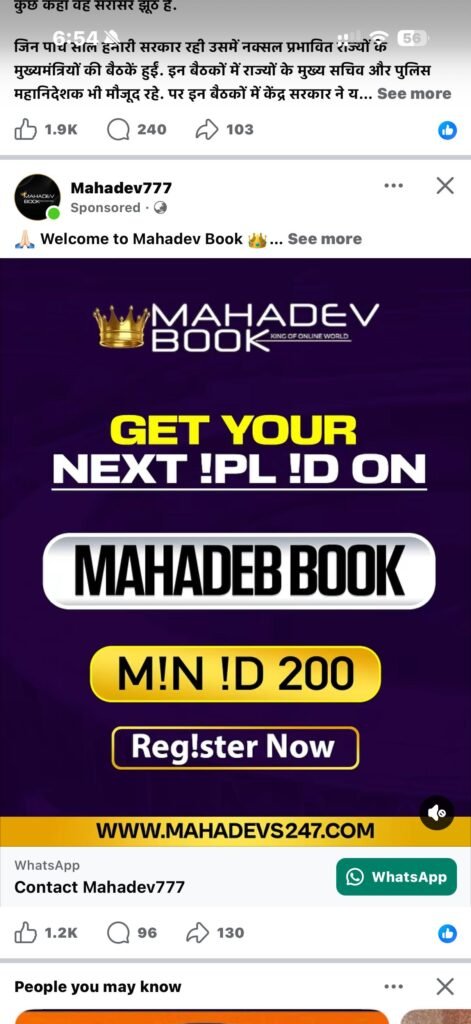 *आज भी फेसबुक, इंस्ट्रग्राम में महादेव सट्टा एप का विज्ञापन चल रहा