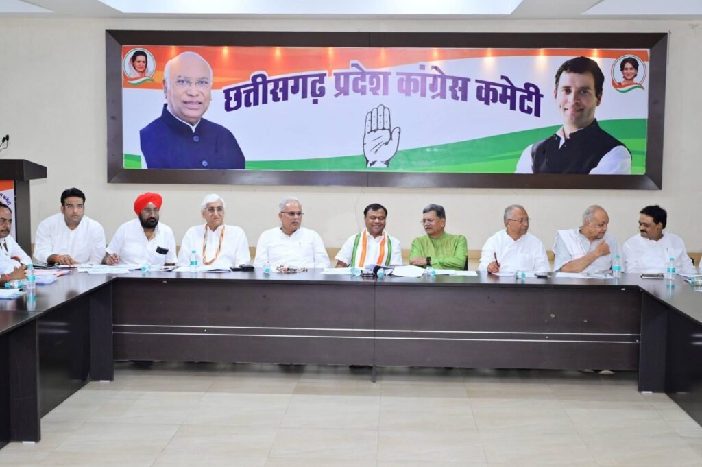 रायपुर/08 अप्रैल 2026। प्रदेश कांग्रेस कमेटी की महत्वपूर्ण बैठक प्रदेश कांग्रेस अध्यक्ष दीपक बैज की अध्यक्षता तथा नेता प्रतिपक्ष डॉ. चरणदास महंत, पूर्व मुख्यमंत्री भूपेश बघेल, पूर्व उपमुख्यमंत्री टी.एस. सिंहदेव, पूर्व मंत्री ताम्रध्वज साहू, पूर्व मंत्री रविन्द्र चौबे, प्रभारी महामंत्री मलकीत सिंह गैदू की उपस्थिति में राजीव भवन में संपन्न हुई।
